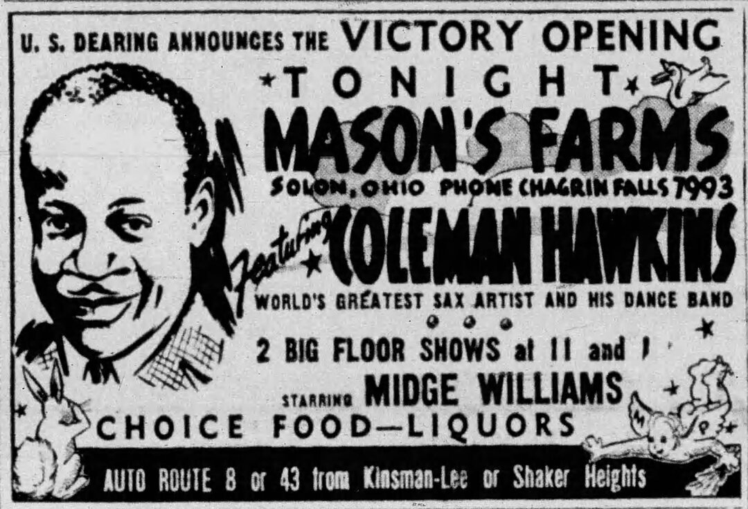 Over the next decade, Dearing managed other entrepreneurs’ ventures, all of them featured in the Green Book for Negro Motorists, while struggling to launch his own. He managed Jack Hecht’s Cedar Gardens (1933–37), Benny Mason’s Cedar Country Club/Mason's Farm in Solon (1938–42), and Mason’s Blue Grass Club (1943–45). During his tenure at Mason’s Farm, Dearing briefly owned two restaurants of his own. First, he operated Dearing’s Tasty Shop (1938–39), formerly the Green Book–listed Chicken Coop. Then he bought the Park Avenue Restaurant at 5622 Woodland in 1941 but owned it for less than a year. Dearing then opened his next Dearing’s at 9708 Cedar (next to Cedar Gardens) in the former Palace Cafe in 1943, but within a few months he had moved a block to the former site of Club Ron-Day-Voo at 9804 Cedar, where he remained until 1945.