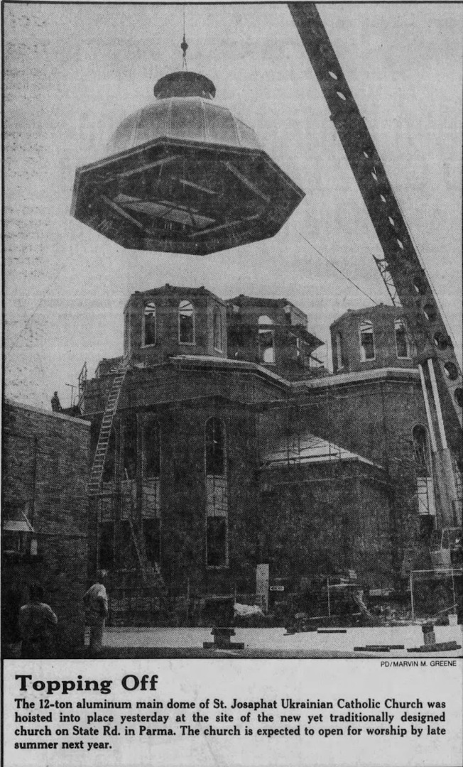 Today, visitors to Parma, who drive to the suburb on State Road will, as they cross Brookpark Road, immediately take notice of the colorful signage which announces that they are entering Ukrainian Village. Within moments thereafter, they will see the five majestic onion domes of the beautiful Saint Josaphat Cathedral. The signs and the domes inform visitors not only of the historical importance of Saint Josaphat to Parma's Ukrainian community, but also of its importance to the City of Parma itself.
