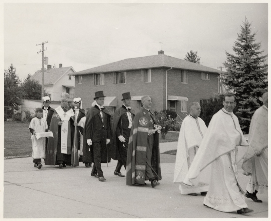 For most of the first half of the twentieth century, the children of the parishioners at Saints Peter and Paul Church attended school either in the basement of their church in Tremont or at other places in Cleveland. In 1947, Pastor Dmytro Gresko and his parishioners decided that they would build an elementary school for the parish children on land located in the suburb of Parma. Their decision was likely influenced by the number of parishioners who, since the end of World War II, had been moving out of Tremont and into that fast growing suburb.